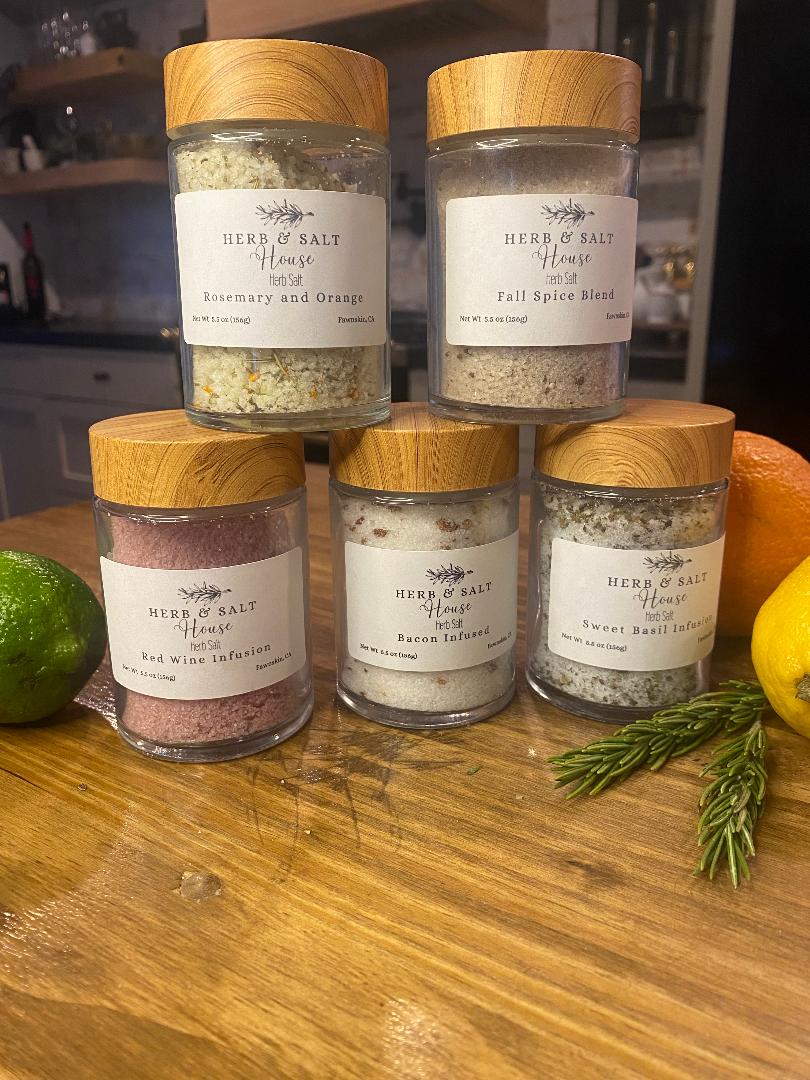 Discover the Gourmet Flavors of Our Herb Salts Through Our Small Jar Herb Salt Collection.