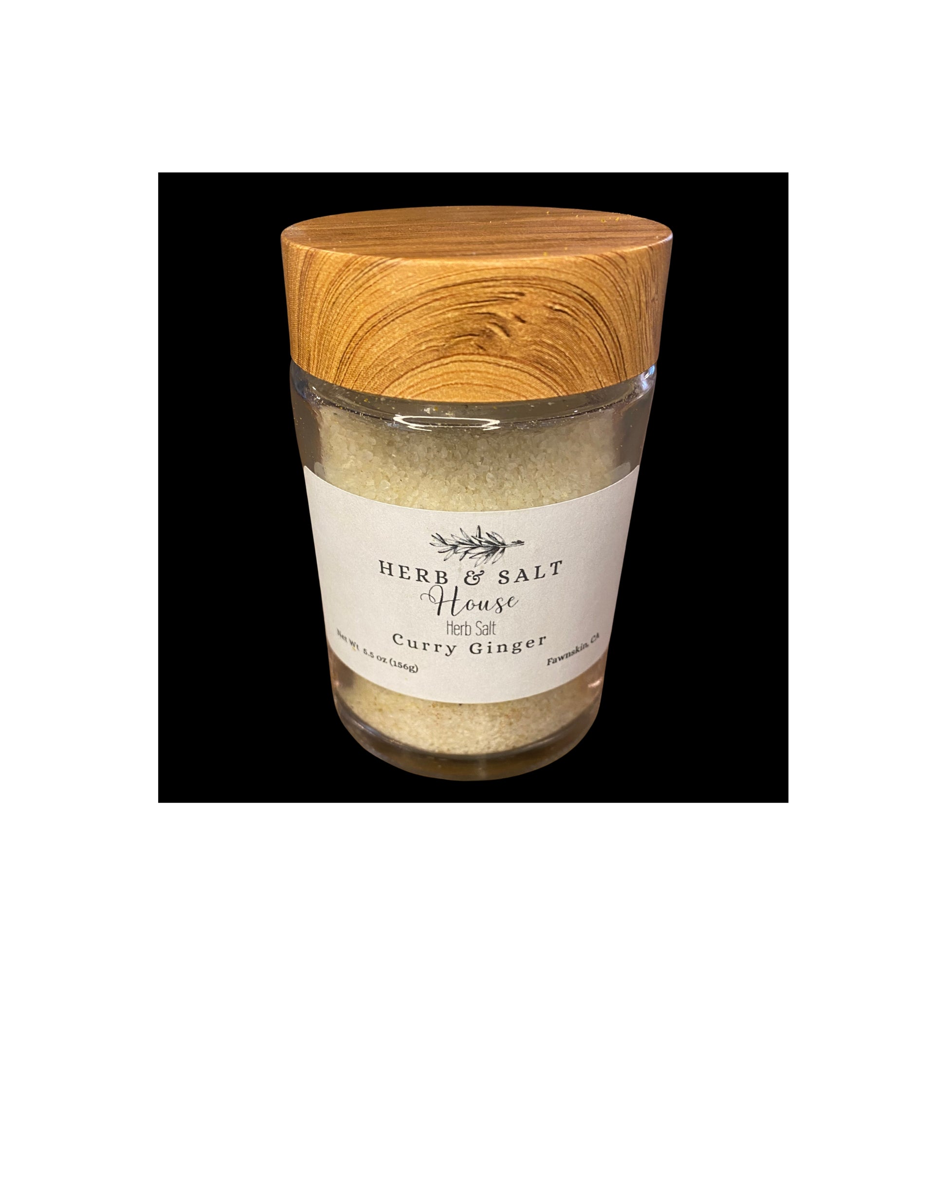 Add a burst of flavor to your dishes with our small batch herb salt. Made with a delicious blend of curry and ginger, it's perfect for seasoning chicken, fish, and vegetables. The elegant glass jar and faux wood cap add a touch of sophistication. Jar measure's 3 3/4" in height and 2 1/4" in diameter. Makes a perfect gift! Don't forget to check out our gift packages!